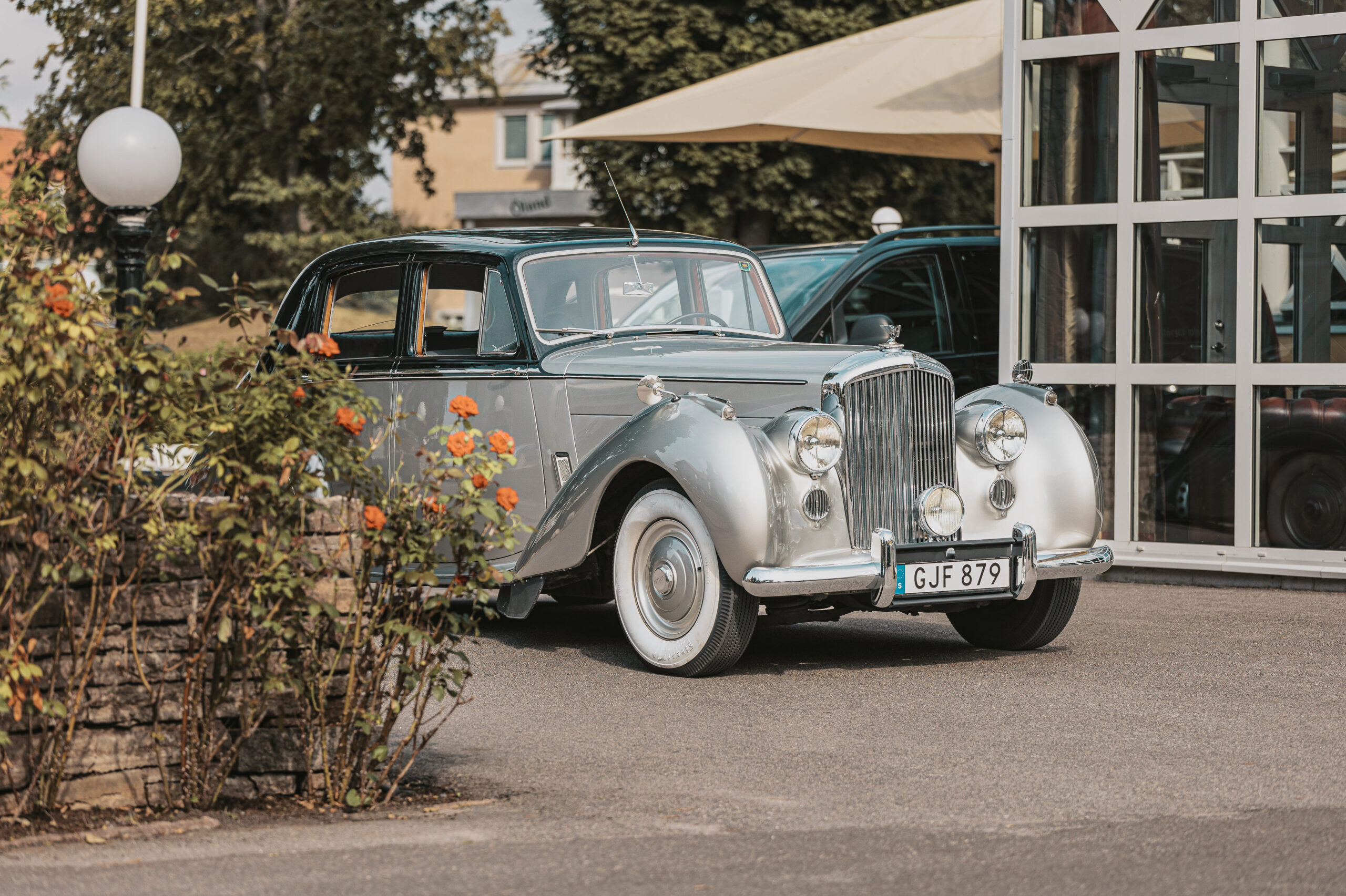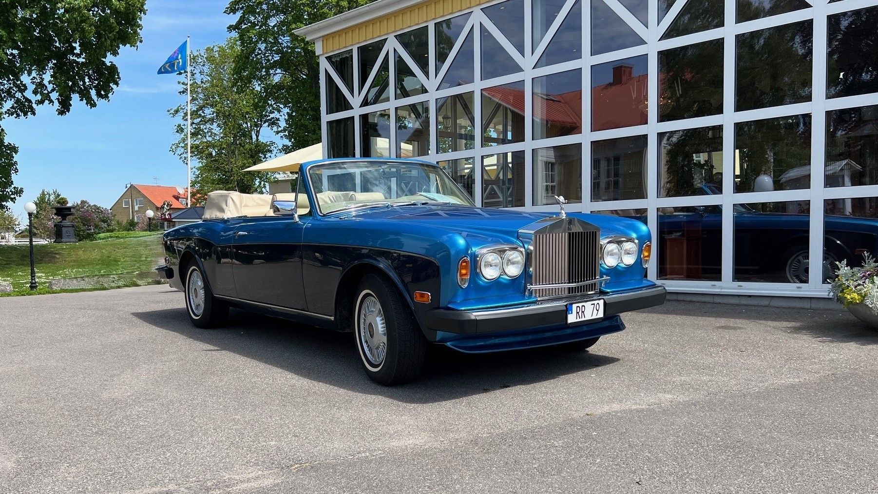 Se bilder på bilarna nedan, den blåa är vår Rolls Royce och den silvriga är vår Bentley.